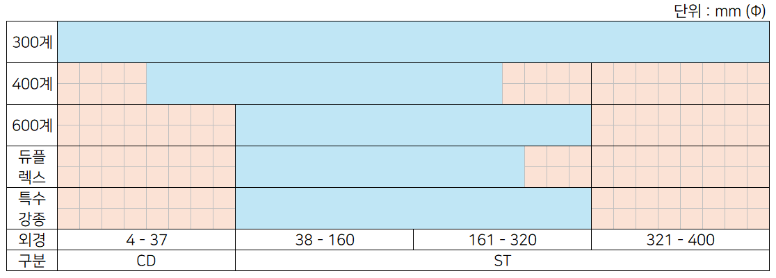 - 조달 가능 메이커 : 산요특수강(일본), 다이도특수강(일본), 비라지(인도), 발브루나(이탈리아), 청산(중국), 베트남산 CD BAR 外